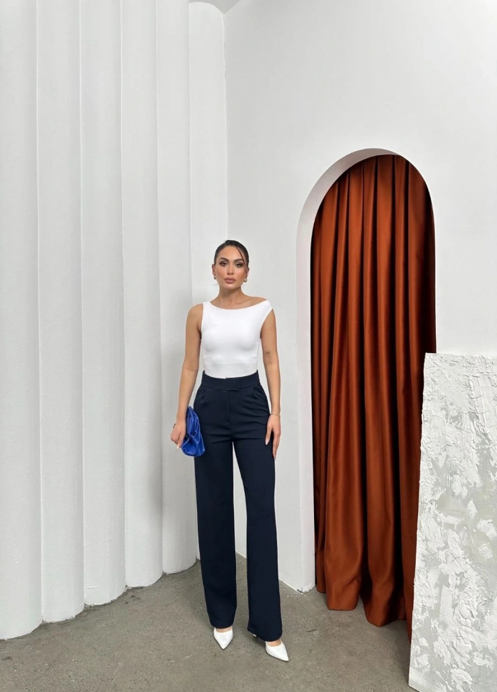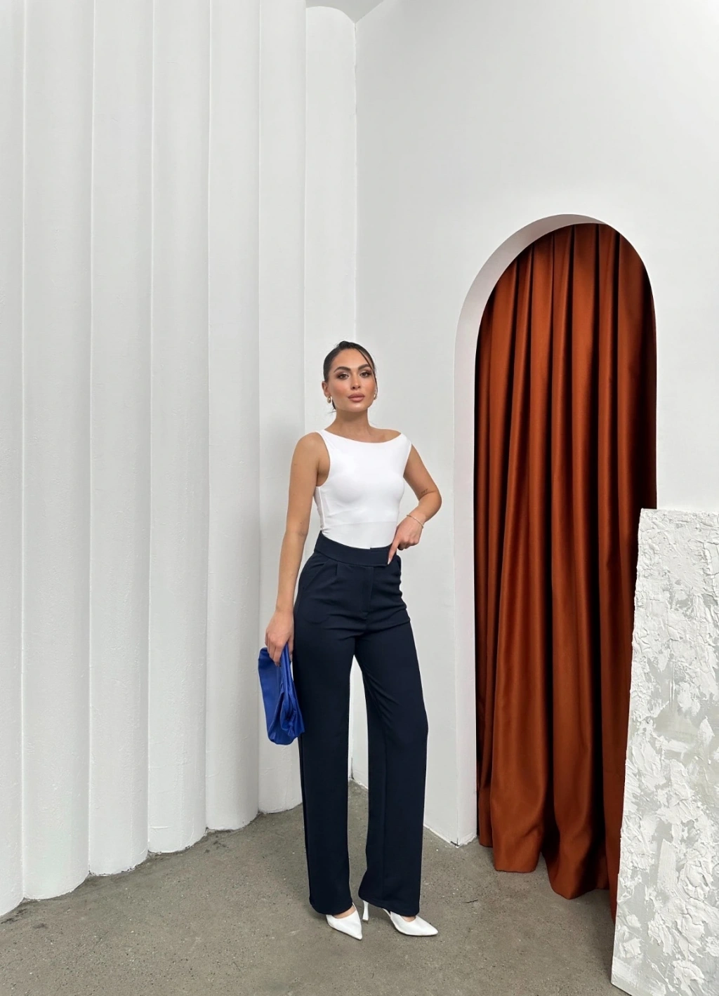 Yandan katlamalı pantolon siyah
