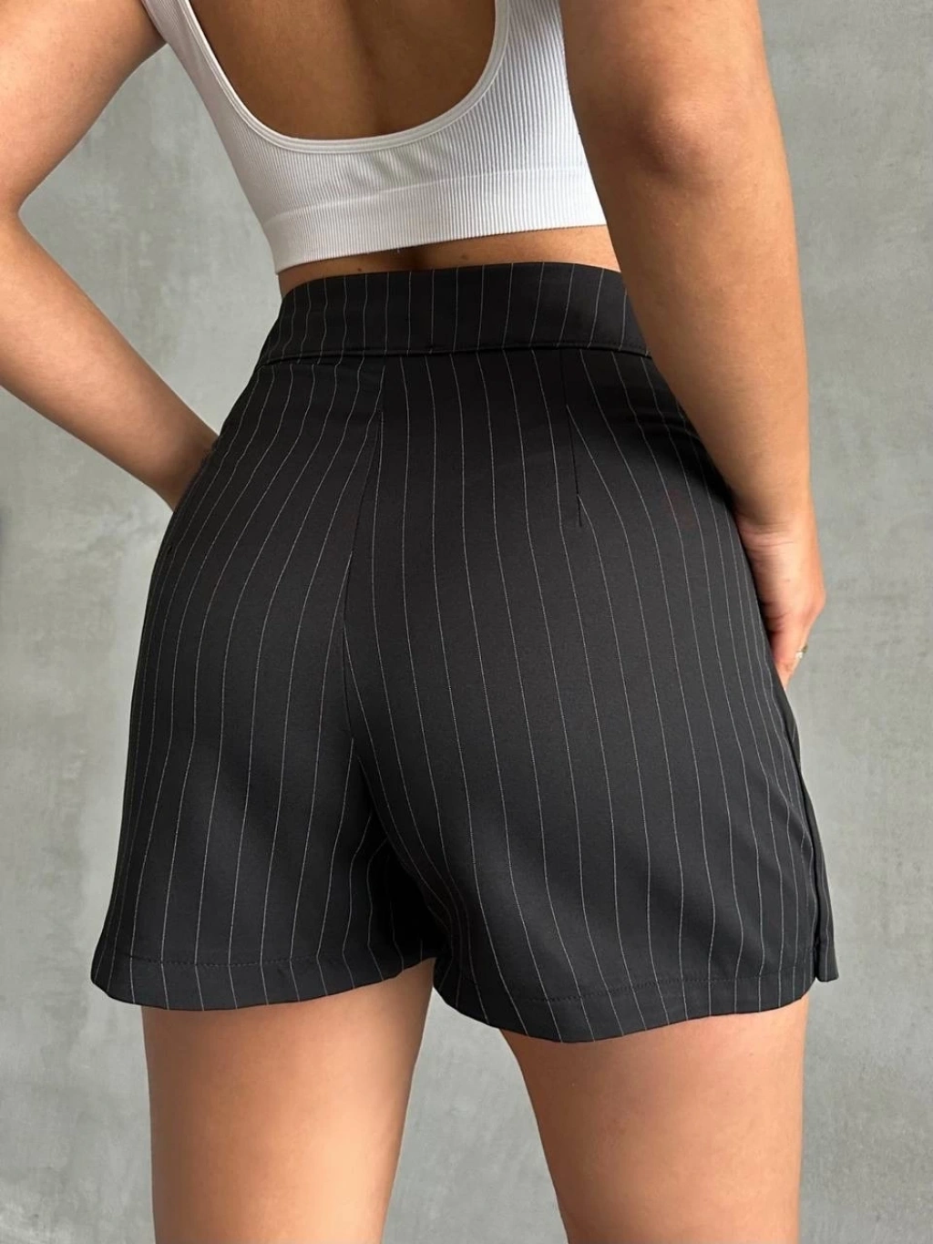 Müslin kumaş şort bağcıklı siyah pt