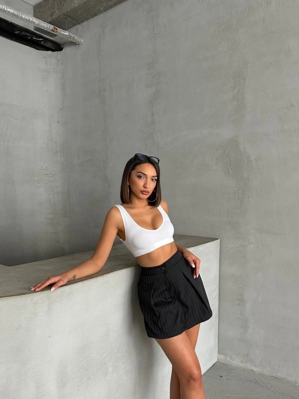 Kapaklı kaşe şort etek siyah beyaz kazayağı h261218