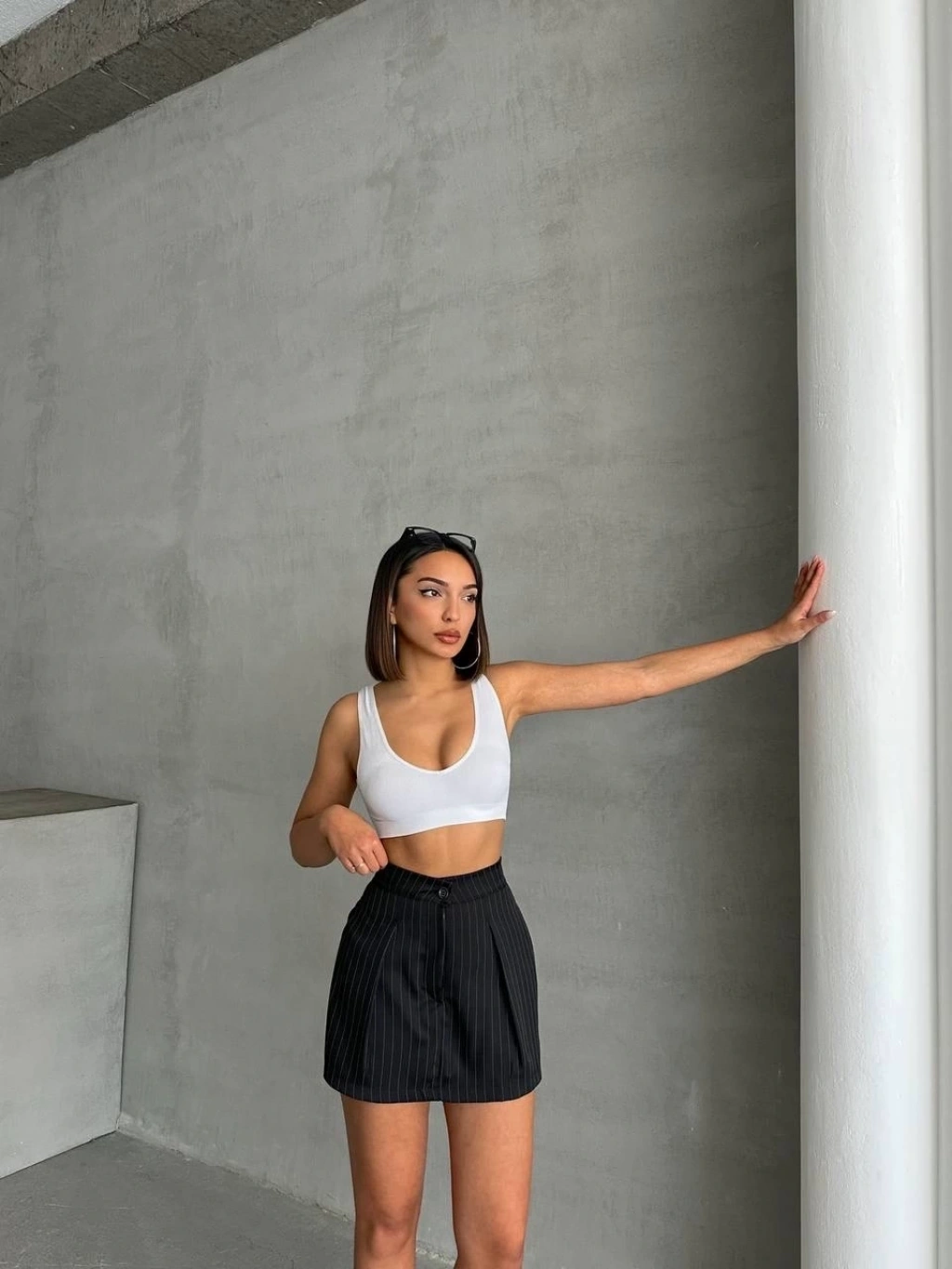 İki düğmeli şort etek beyaz h26414