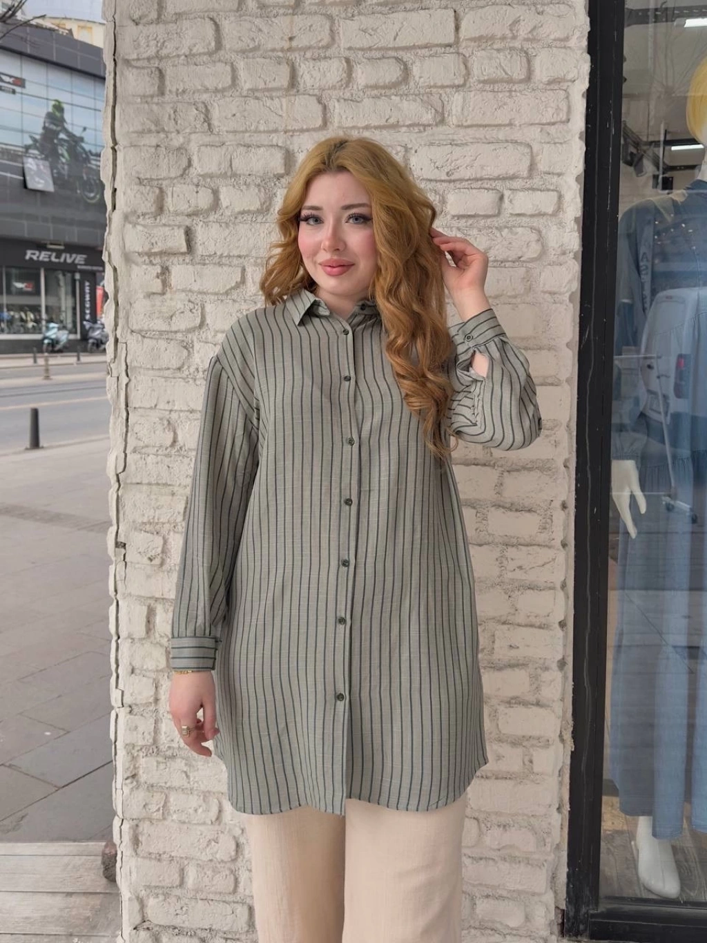 KAZAX çizgili tunik gömlek, şıklığı ve rahatlığı bir arada sunuyor. İster günlük hayatta ister özel günlerde tercih edebileceğiniz bu gömlek, şık çizgili tasarımıyla dikkat çekiyor.