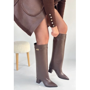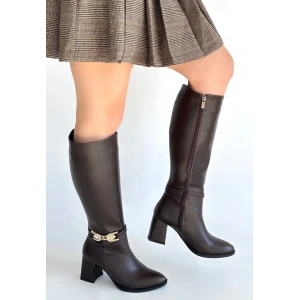 Jeoli Kahverengi Cilt Topuklu Çizme