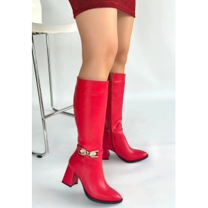 Roksa Acı Kahvei Cilt Topuklu Çizme