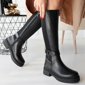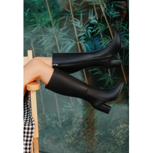 Zelya Siyah Cilt Topuklu Çizme