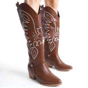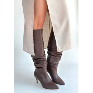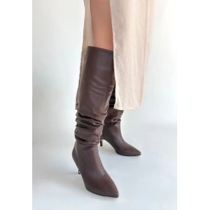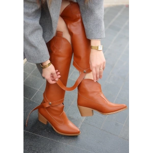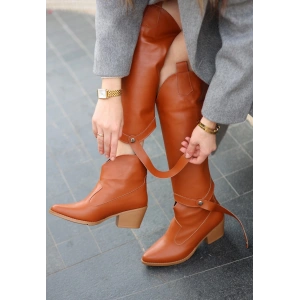 Zelya Kahverengi Cilt Topuklu Çizme