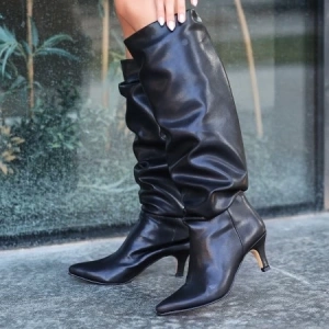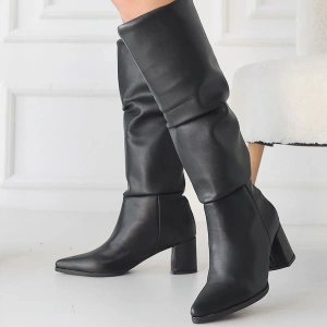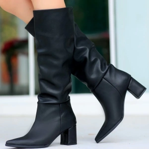 Jeoni Siyah Cilt Topuklu Çizme