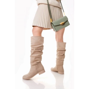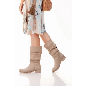 Winda Bej Süet Körüklü Çizme