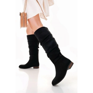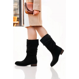 Winda Siyah Süet Körüklü Çizme