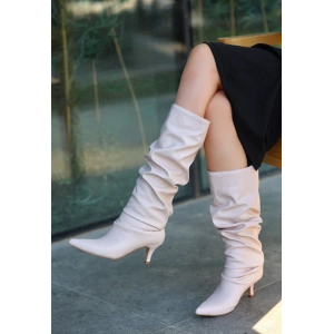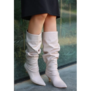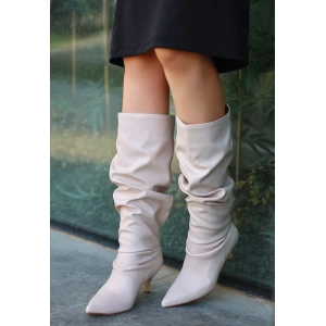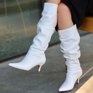 Zelya Beyaz Cilt Topuklu Çizme