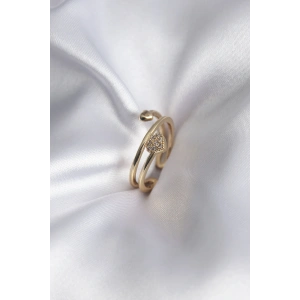 Pirinç Gold Renk Zirkon Taş Detay Kalp Model Kadın Yüzük