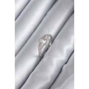 Pirinç Gümüş Renk Zirkon Taş Detay Kalp Model Kadın Yüzük