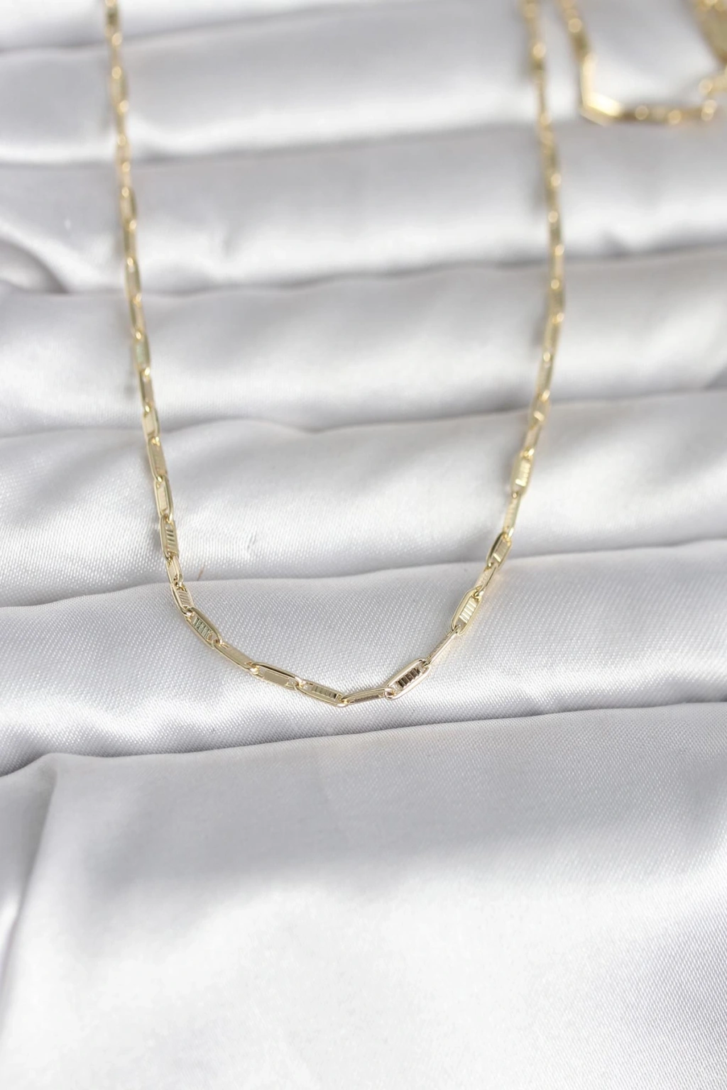 -Marka Kalitesi: CM markasının yüksek standartlı kaplama teknolojisi ile üretilmiştir.-Uzunluk: 60 cm uzunluğundadır-Materyal: Dayanıklı pirinç materyal üzerine 1. Sınıf 14K Gold (Altın) Rengi Kaplama uygulanmıştır.-Dayanıklılık: Doğru ve özenli kullanımda kararma ve renk solmasına karşı dirençlidir.-Kullanım Önerisi: Ürününüzün ışıltısını ve kaplama kalitesini uzun yıllar koruyabilmesi için parfüm, su, deterjan ve kimyasal maddelerle doğrudan temasından kaçınmanızı öneririz.-Cilt Uyarısı: Her cilt yapısının metal ve kaplamalara vereceği tepki (pH değerine bağlı olarak) farklılık gösterebilir.-Sağlıklı ve mutlu günlerde kullanmanız dileğiyle.