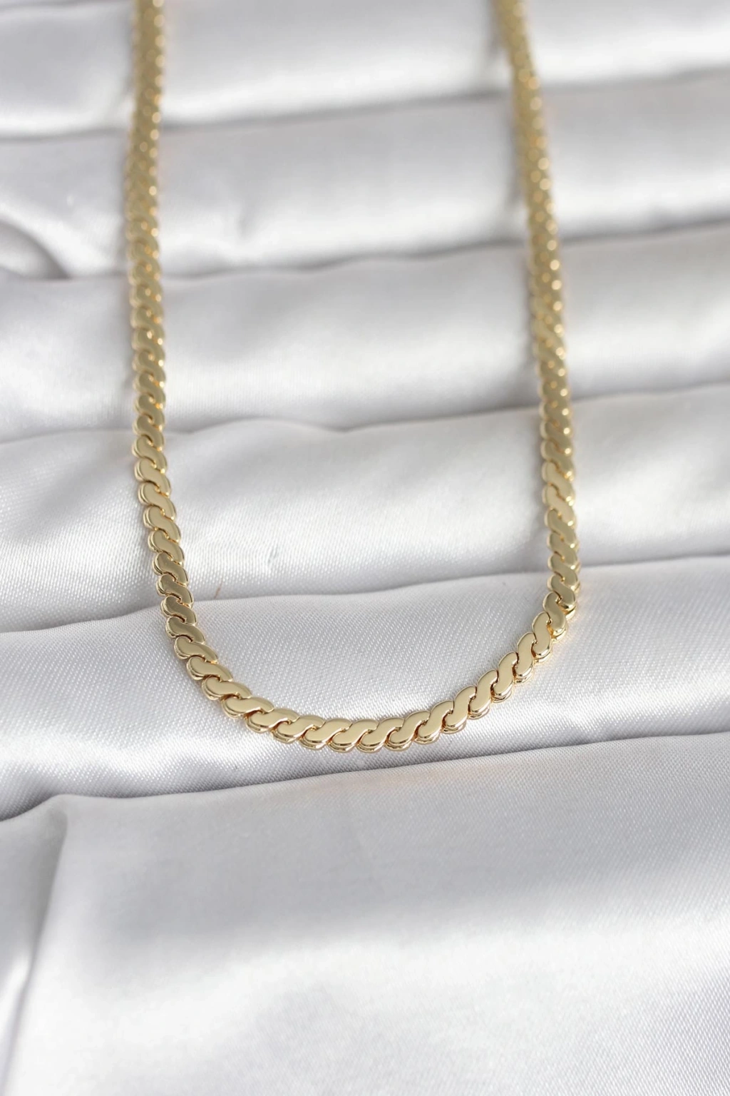 CM 14K Gold Renk Yassı Ezme Zincir Model 60 cm Kadın Kolye