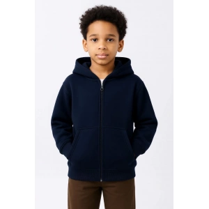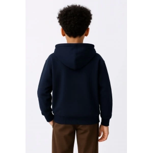 Erkek Çocuk Kapüşonlu Kanguru Çepli Tam Fermuarlı Hırka SweatShirt - Lacivert