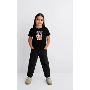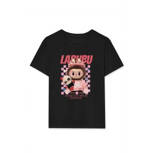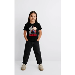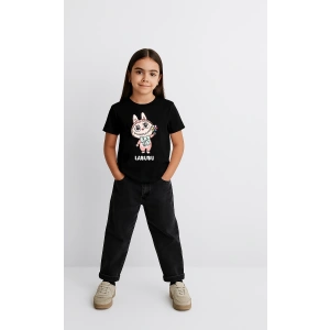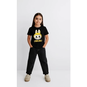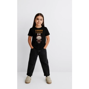 Kız Labubu Çocuk Baskılı T-Shirt - Siyah
