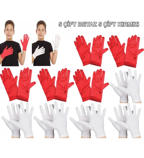 Çocuk Gösteri Eldiven Seti – 5 Çift Beyaz & 5 Çift Kırmızı