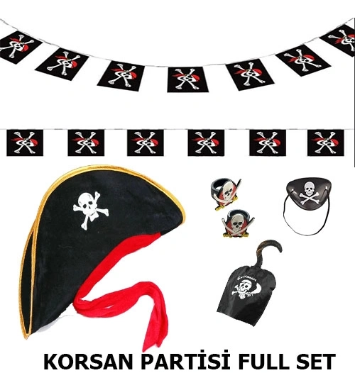 Çocuk Korsan Şapkası + Kancası + Göz Bandı + 2 Adet Yüzük + Afiş Seti