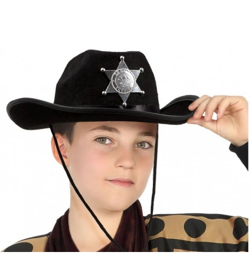 Çocuk Kovboy Şapkası Sheriff Şapkası Siyah Renk