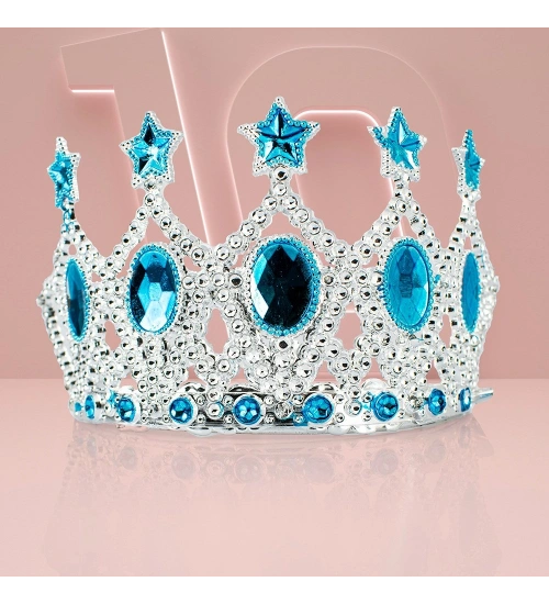 Çocuk Kraliçe Tacı-Mavi Yıldız İşlemeli Prenses Tacı15x7cm NessiWorld