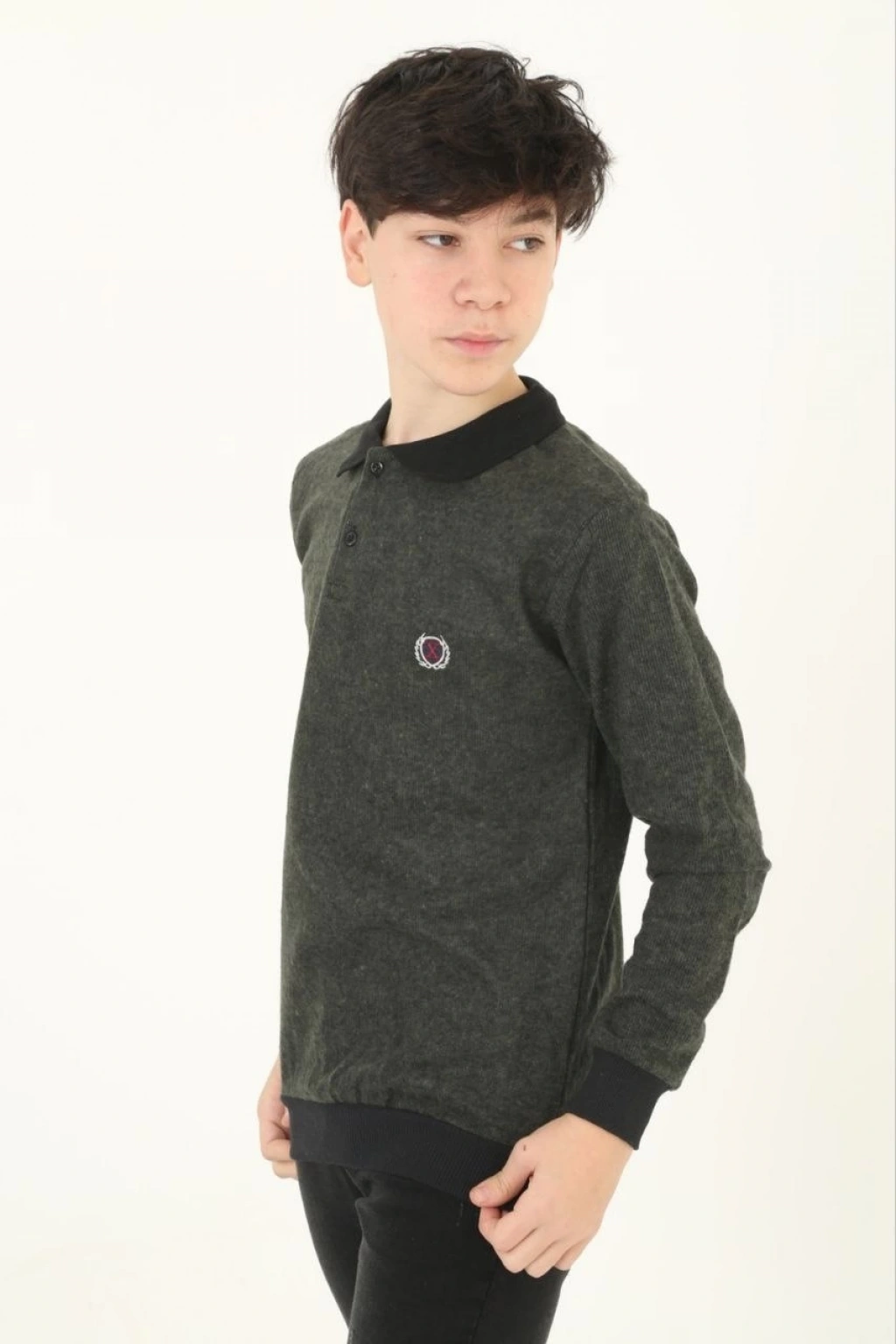 Çocuk Selanik Yaka Nakışlı Kazak - Haki