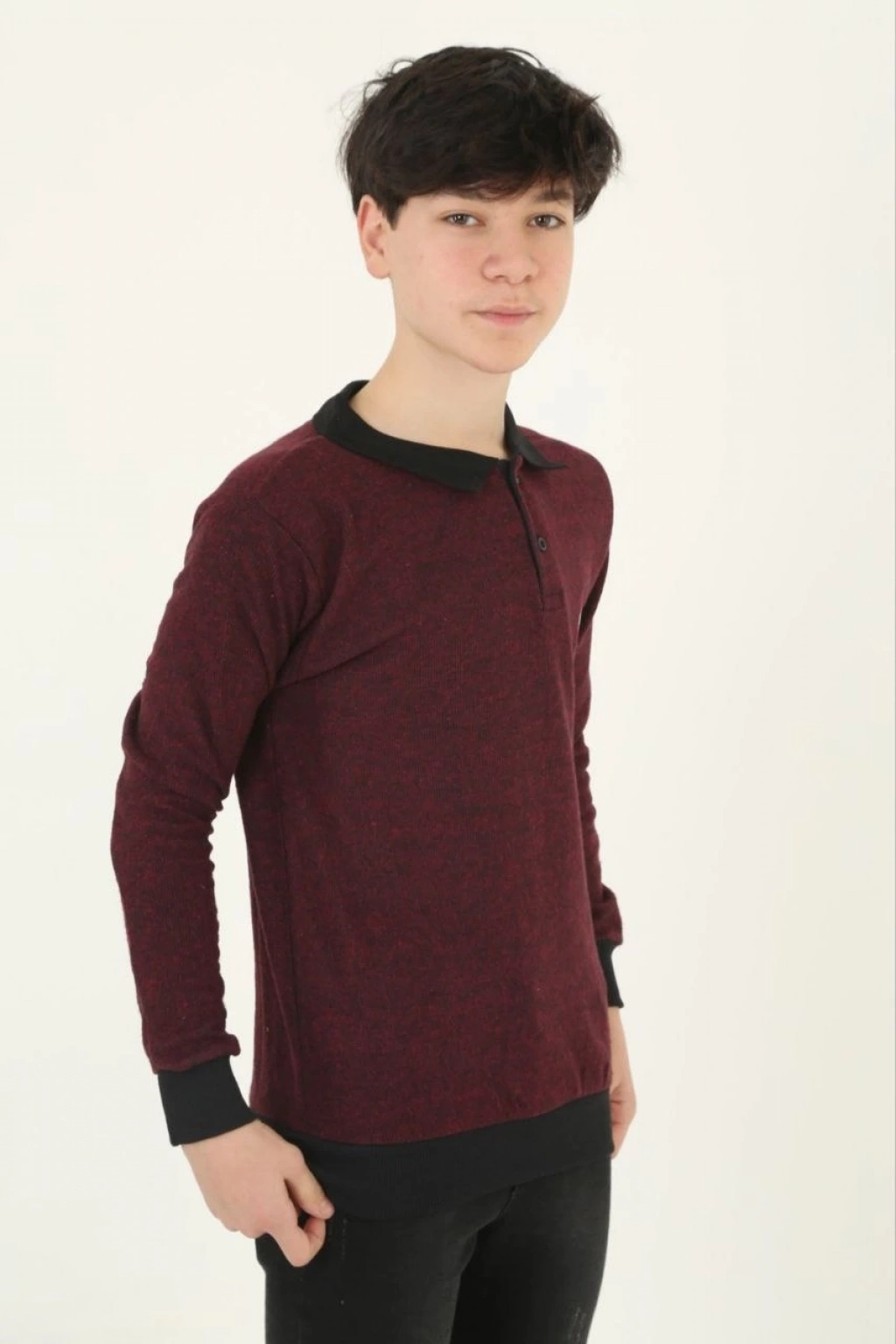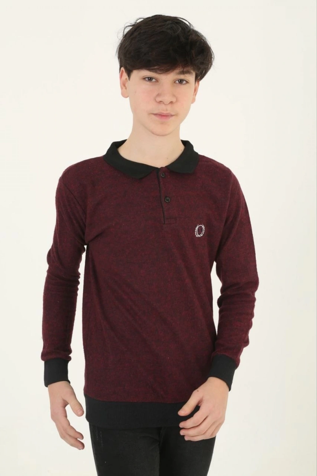 Çocuk Selanik Yaka Nakışlı Kazak - Kırmızı