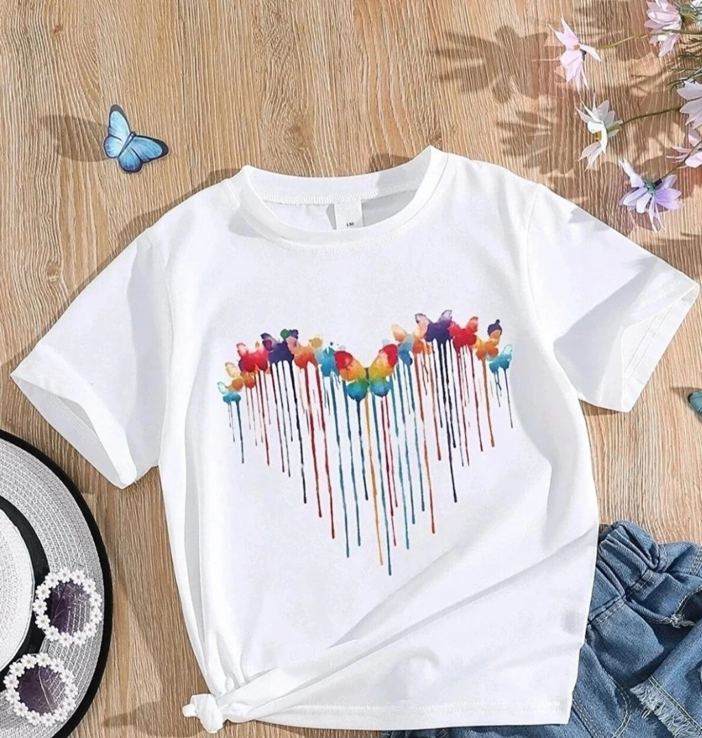 Kız Labubu Çocuk Baskılı T-Shirt - Beyaz