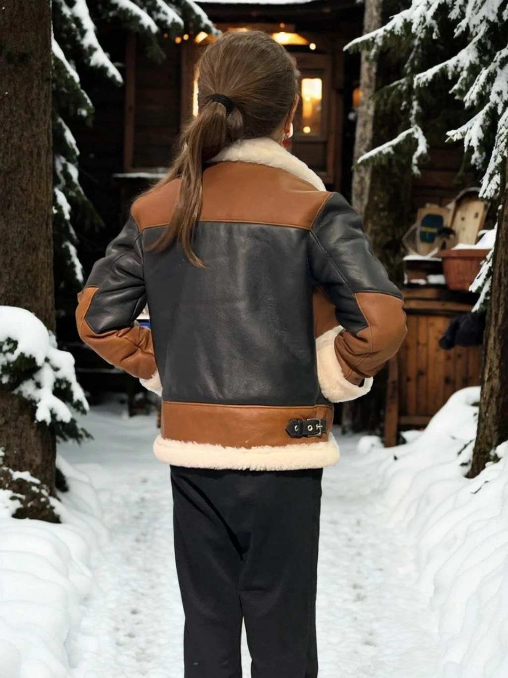 Kadın Uzun Kollu Hakiki Deri Kürk - Siyah