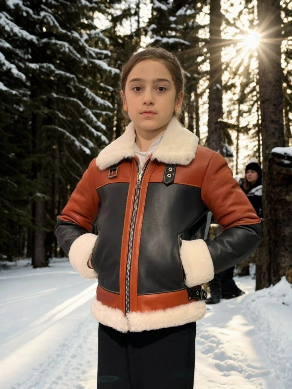 Çocuk Yakalı Parçalı Kürk - Kahve