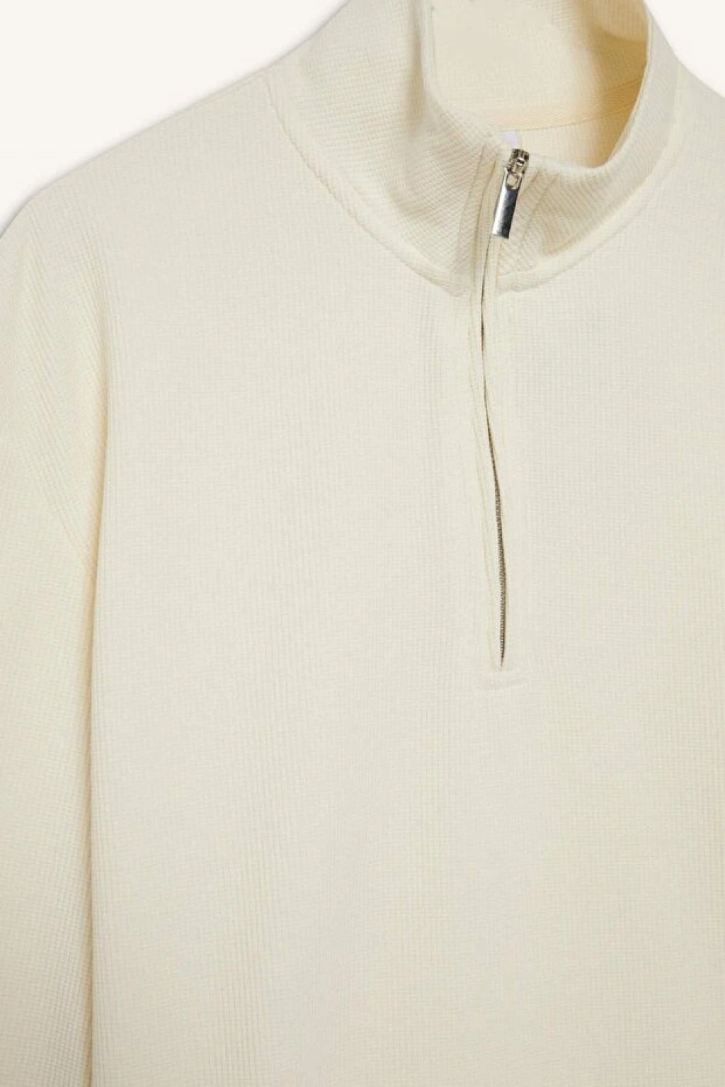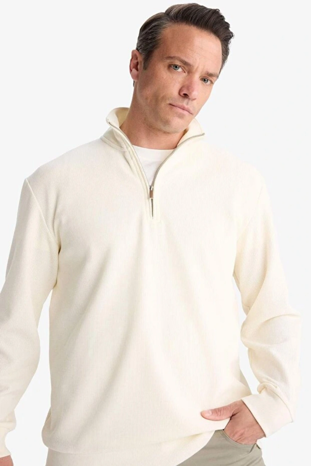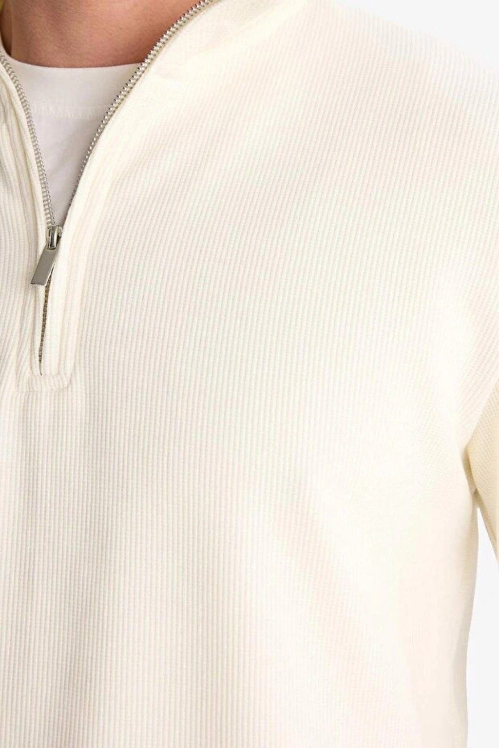 Comfort Fit Dik Yaka Yarım Fermuarlı Waffle Sweatshirt, rahat ve şık bir kullanım sunar.