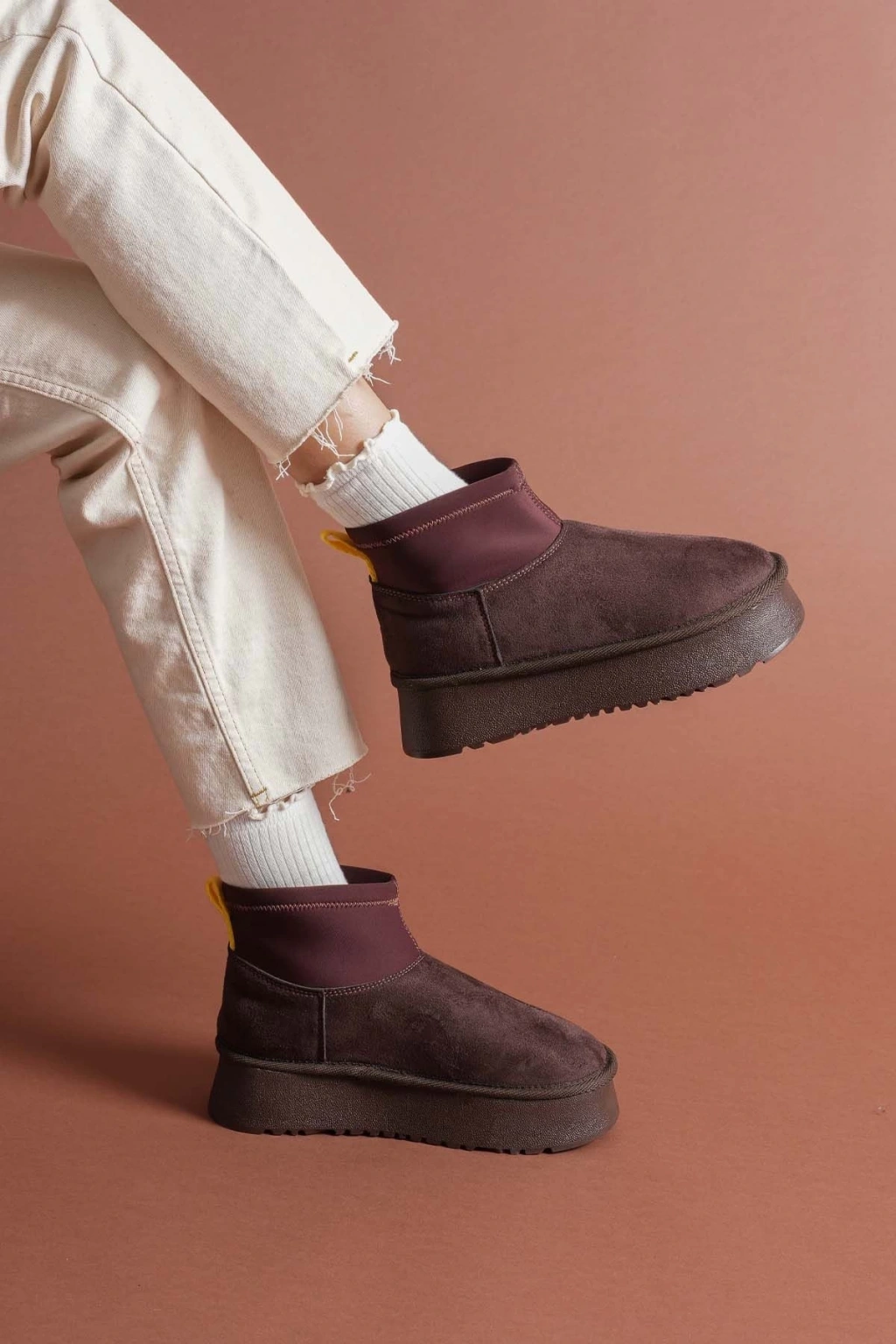 Orjen Kahverengi Cilt Streç Topuklu Bot