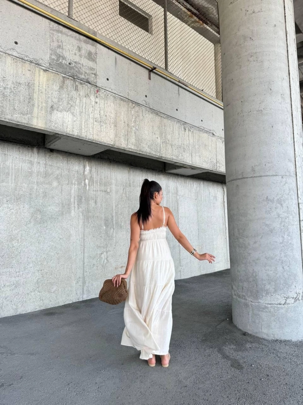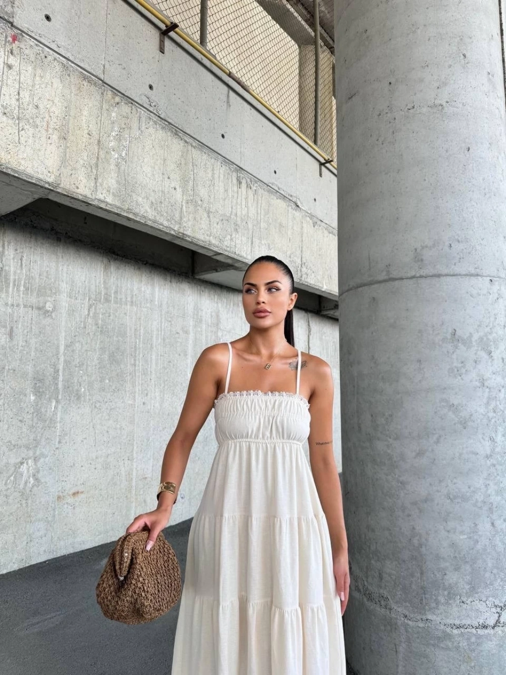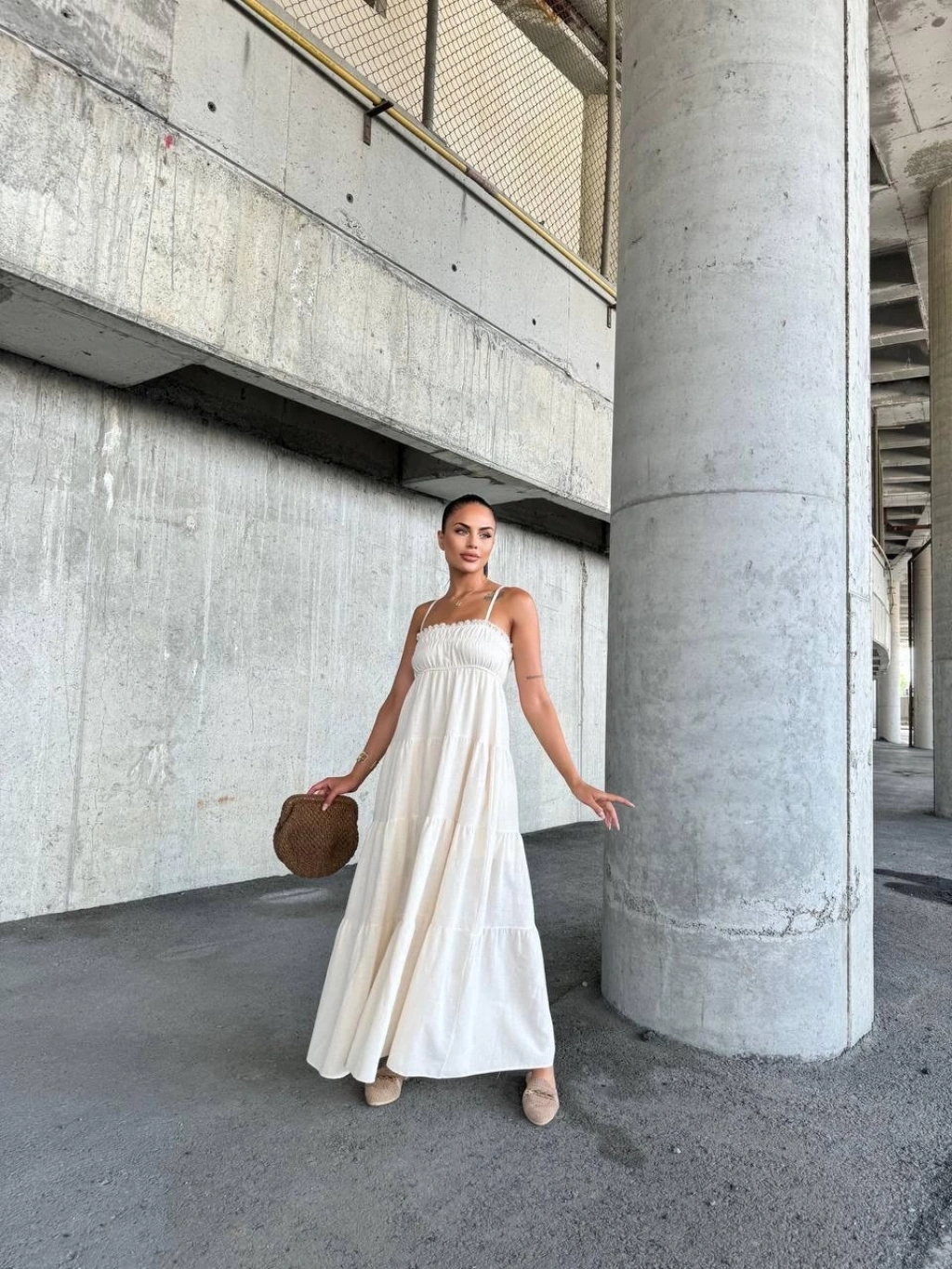 Askılı ch kumaş düğmeli elbise pudrabeyaz h265007