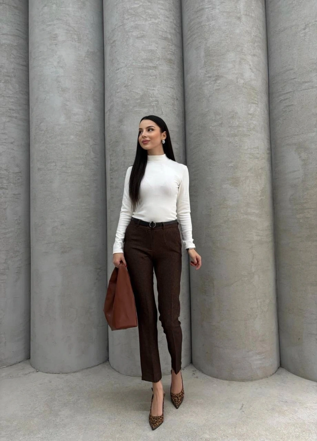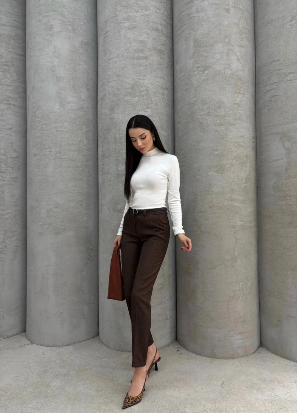 İspanyol yırtmaçlı paça deri pantolon bej hn