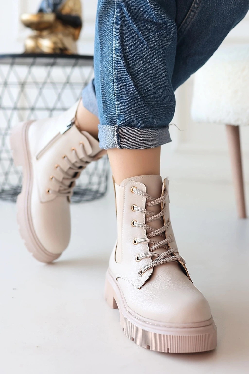 Jones Bej Cilt Bağcıklı Topuklu Bot