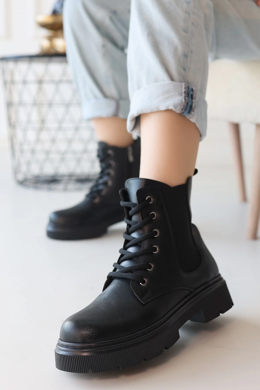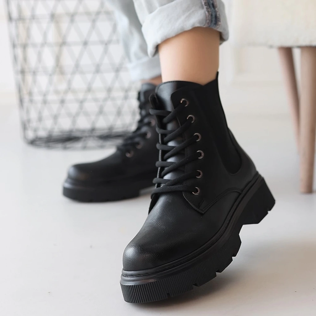 Jones Siyah Cilt Bağcıklı Topuklu Bot