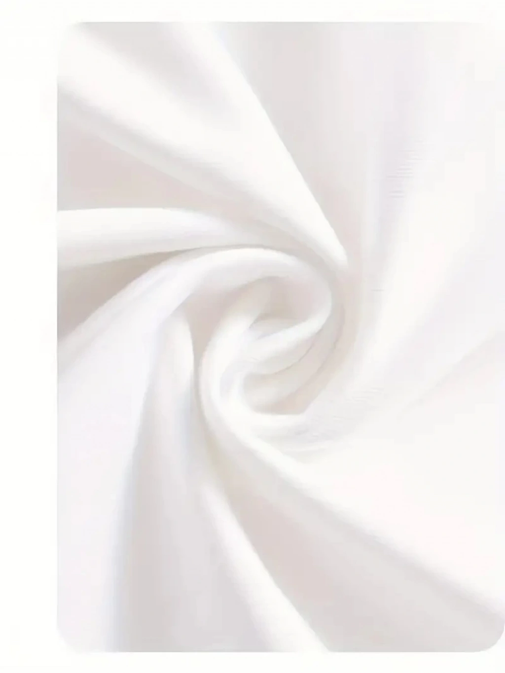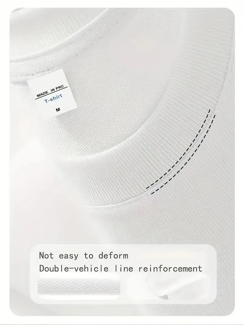 Rahat Bisiklet Yaka Tişört, Yaratıcı Karikatür Baskı - Yumuşak Polyester, Her Mevsim Giyilebilir- Beyaz