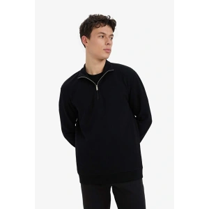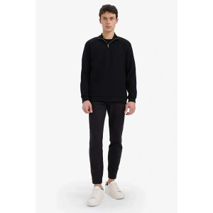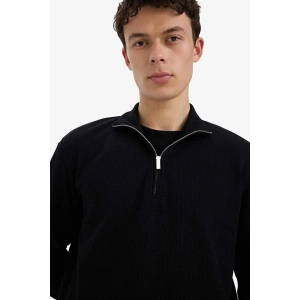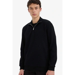 Comfort Fit Dik Yaka Dokulu Yarım Fermuarlı Waffle Sweatshirt
