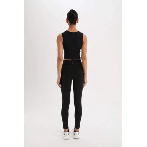 Fit Siyah Yüksek Bel Beli Saran Pamuklu Basic Düz Sporcu Tayt