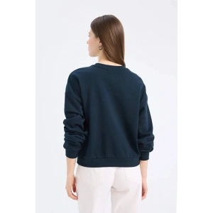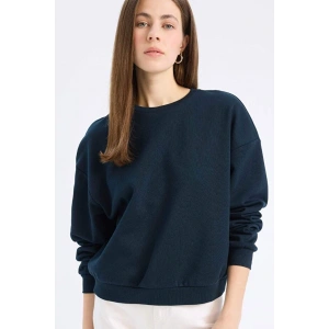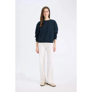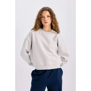 Regular Fit Bisiklet Yaka Kalın Basic Düz Sweatshirt