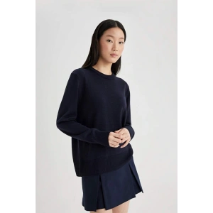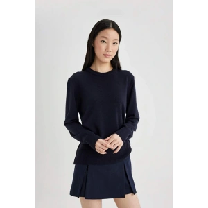 Regular Fit Yumuşak Dokulu Bisiklet Yaka Basic Düz Triko Kazak