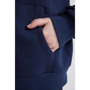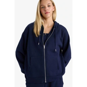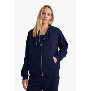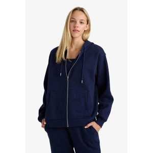 Relax Fit Kapüşonlu Basic Düz Kalın Fermuarlı Sweatshirt