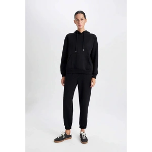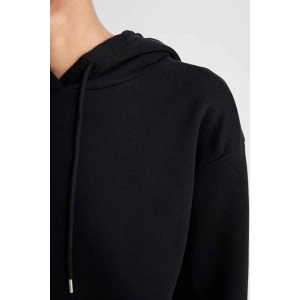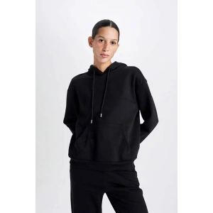 Relax Fit Kapüşonlu Kanguru Cepli Kalın Basic Düz Siyah Sweatshirt