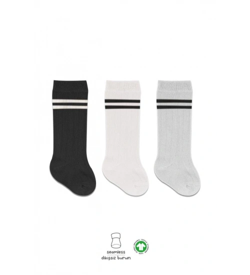 Derby Dizaltı Çorap 3'Lü BS40101 Siyah Ekru Gri Çemberli