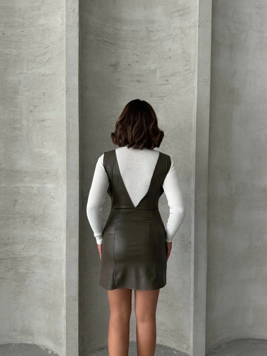 Fermuar detaylı fitilli şardonlu elbise bej a3178