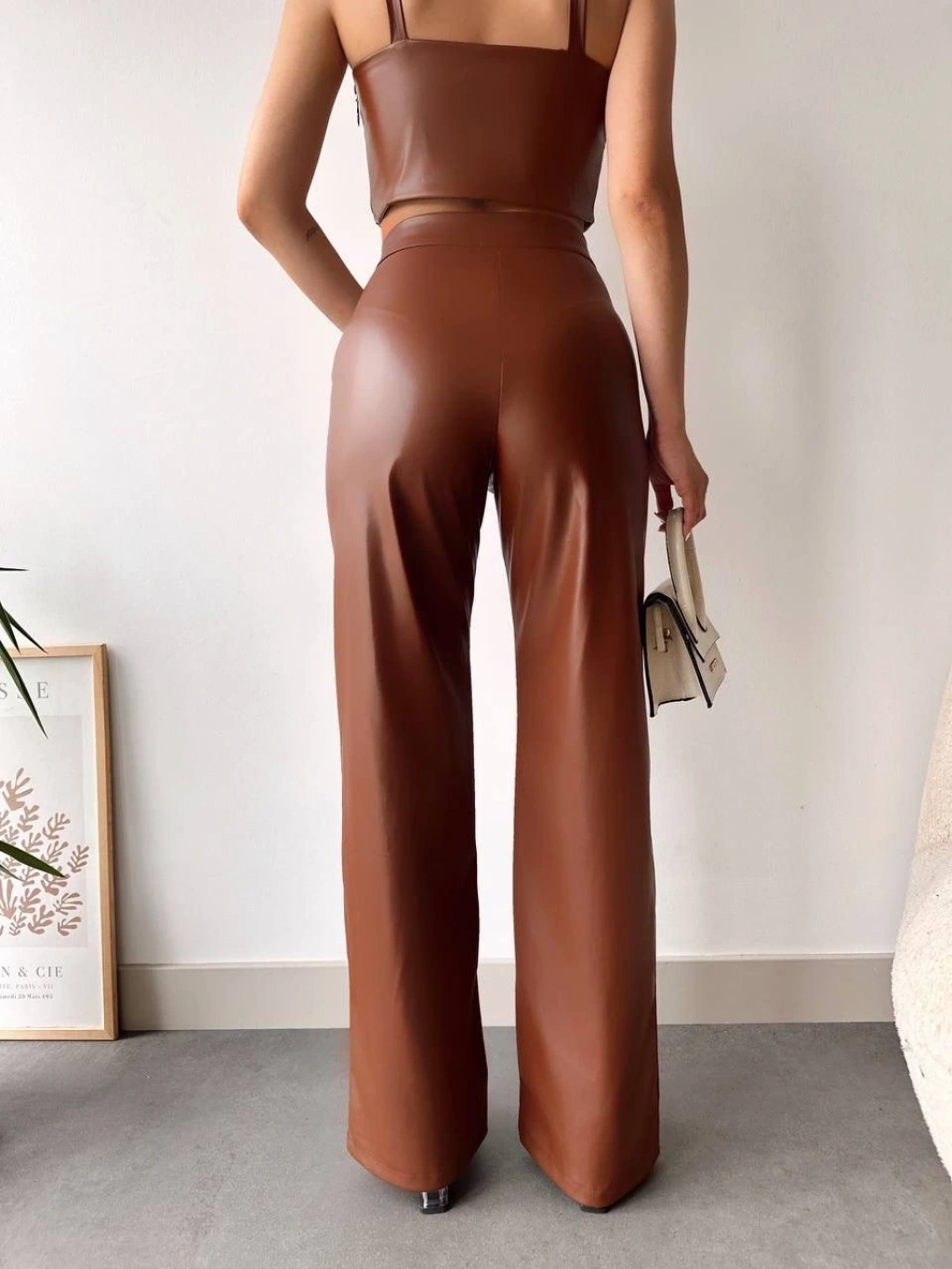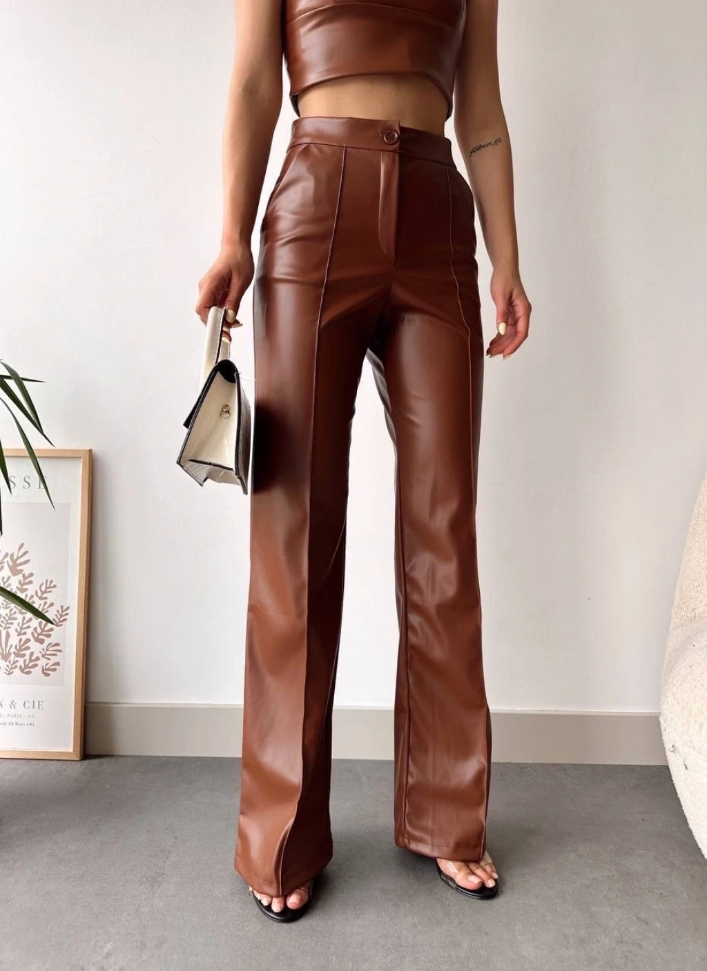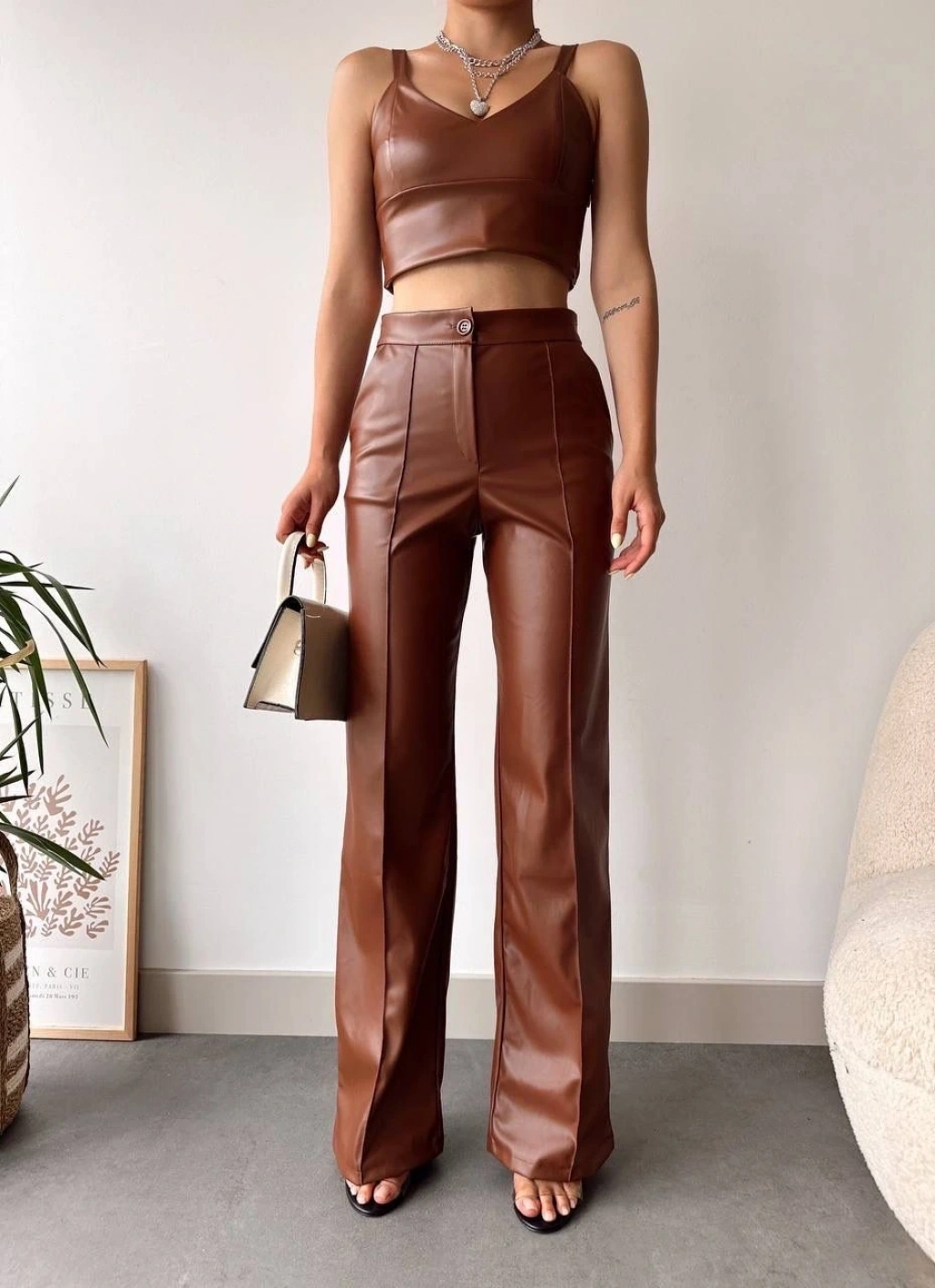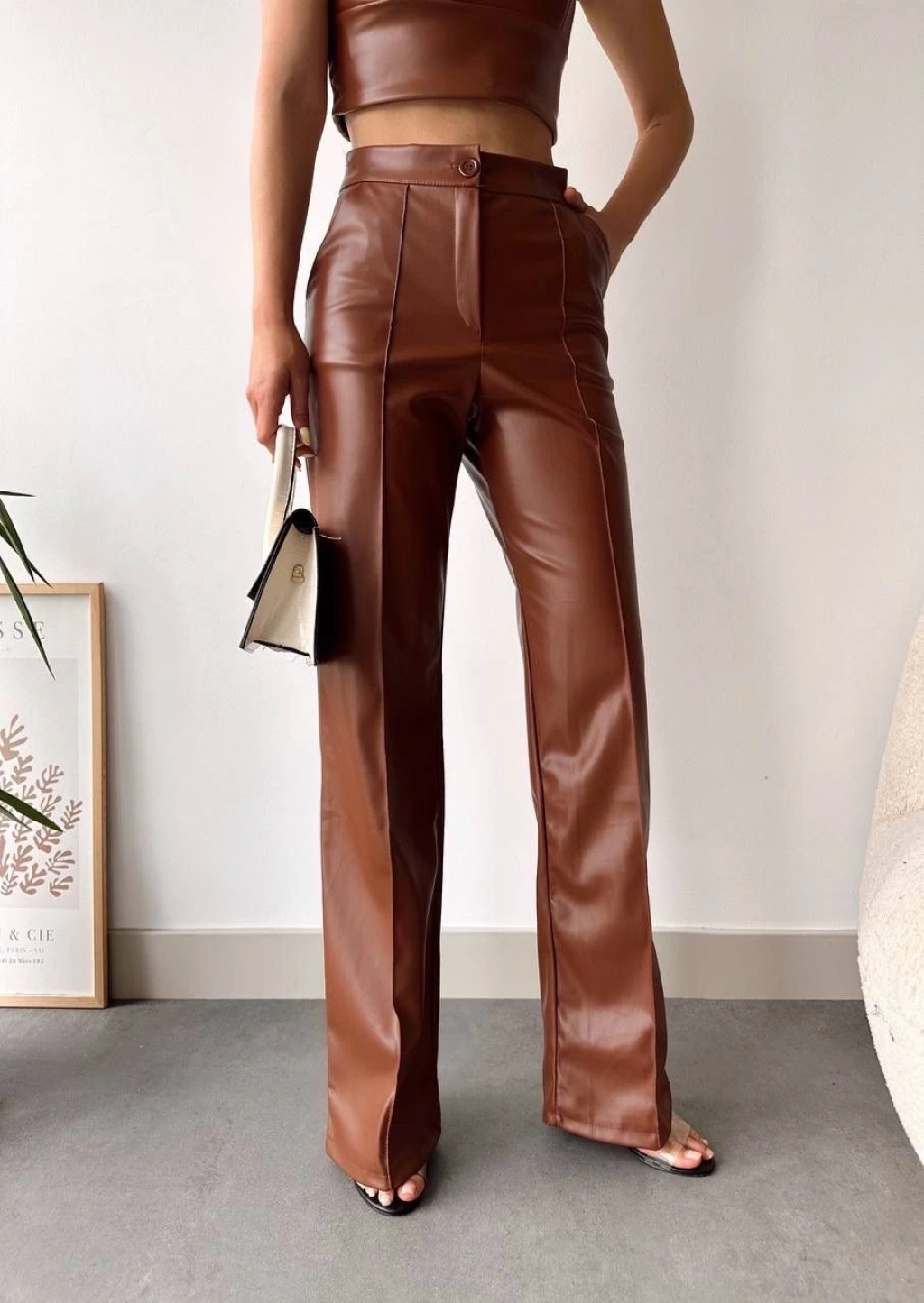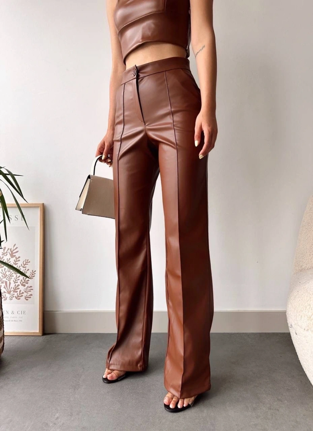 Zr deri palazzo pantolon kahve h24654