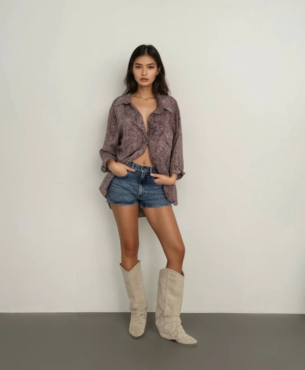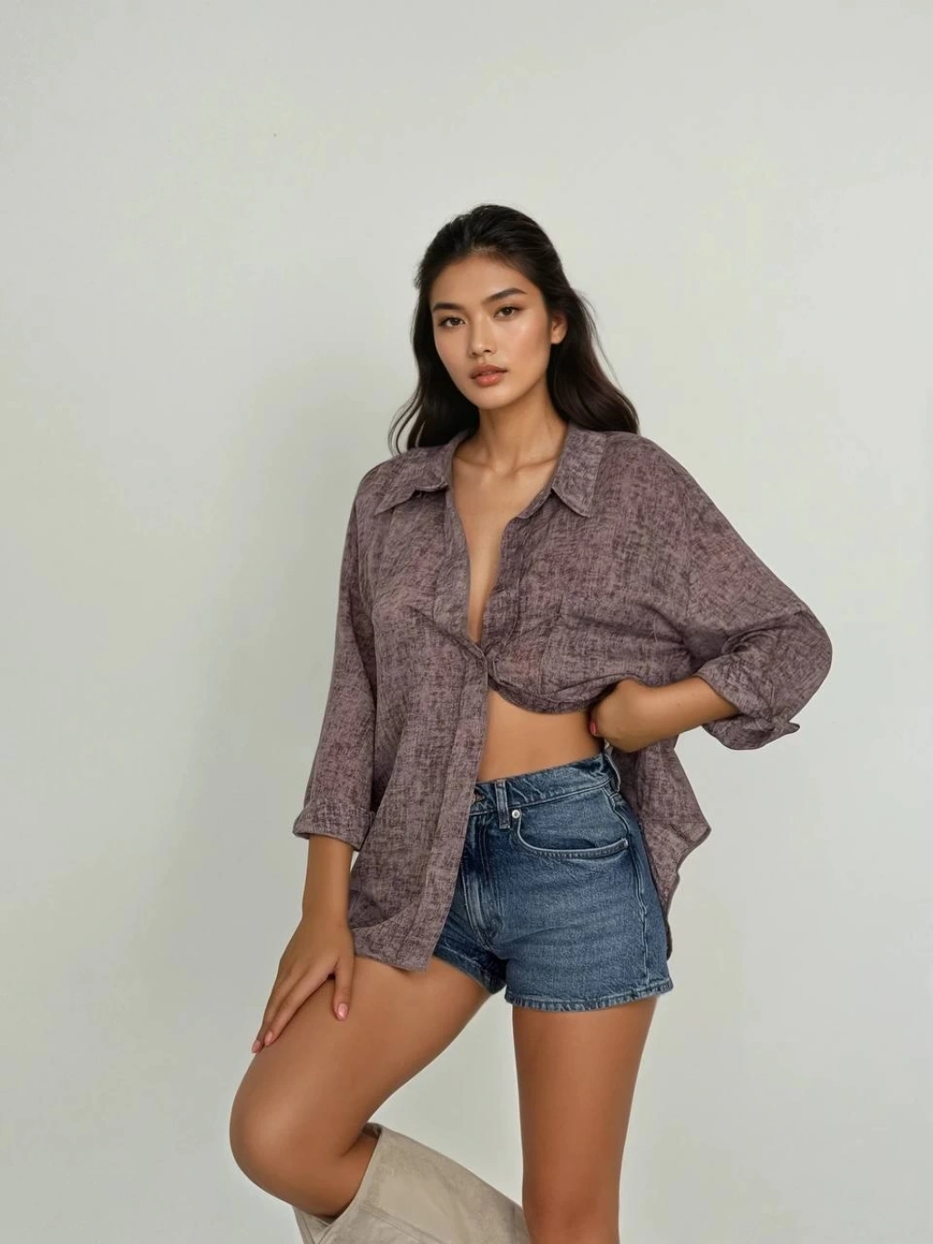 Çift renkli kısa gömlek vizonbeyaz s4021