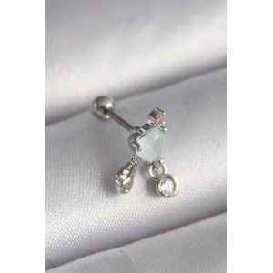 316L Çelik Gümüş Renk Zirkon Taşlı Tragus Piercing