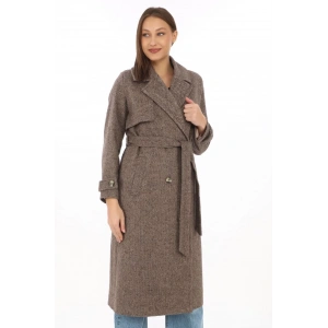 KADIN BALIK SIRTI YÜNLÜ DOKUMA KAŞE KABAN – KRUVAZE YAKA, KUŞAKLI, CEPLİ, ASTARLI UZUN BOY TESETTÜR ŞIK KIŞLIK KAŞE KABAN MODELİ - VİZON