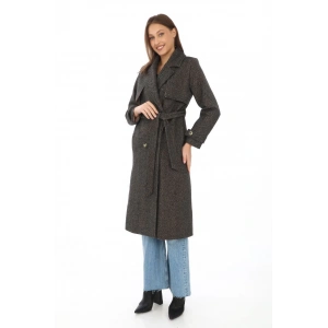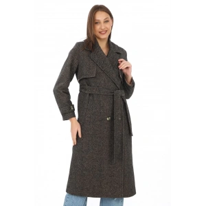 KADIN BALIK SIRTI KAŞMİR UZUN KAŞE KABAN - FÜME