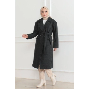 KADIN UZUN KAŞE KABAN – YÜNLÜ DOKUMA KAŞMİR KUMAŞ, KRUVAZE YAKA, KUŞAKLI ASTARLI TESETTÜR UYUMLU ŞIK KIŞLIK SİYAH MODEL - FÜME