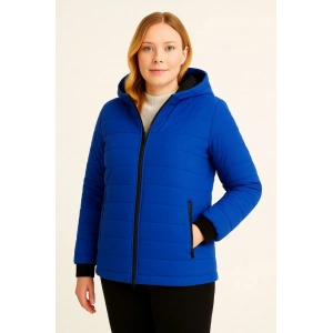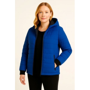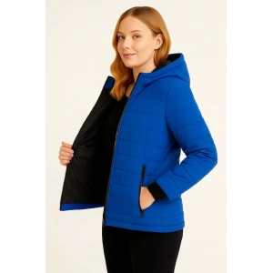 KADIN ŞİŞME KAPÜŞONLU FERMUARLI MONT SU İTİCİ KAPİTONE ASTARLI KUMAŞ CEPLİ KIŞLIK RAHAT KALIP - SAKS MAVİSİ